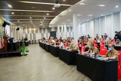 Kegiatan Penilaian Kinerja Aksi Konvergensi Stunting yang digelar Pemerintah Provinsi Lampung di Ballroom Hotel Novotel yang dibuka oleh Wakil Gubernur Lampung Chusnunia Chalim dan di hadiri oleh Bupati Lampung Selatan H. Nanang Ermanto bersama Duta Swasembada Gizi Lampung Selatan Hj. Winarni Nanang Ermanto.