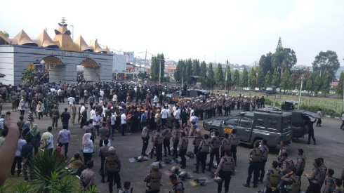 Mereka menginginkan masuk ke dalam area lapangan kantor DPRD Lampung.