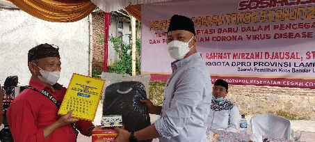 KIPRAH.CO.ID– Anggota DPRD Provinsi Lampung, Rahmat Mirzani Djausal (RMD) sosialisasi perda nomor 3 tahun 2020 tentang Adaptasi Kebiasaan Baru (AKB) dalam pencegahan dan pengendalian corona virus Covid-19.