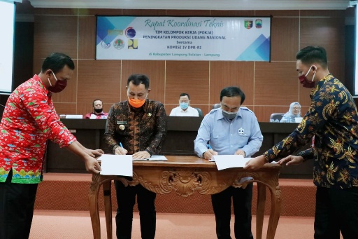 “Alhamdulillah sudah teken MoU. Mudah-mudahan Kabupaten Lampung Selatan bisa menjadi kawasan budidaya udang sesuai harapan kita semua. Sekali lagi tidak henti-hentinya saya ucapkan terima kasih kepada Ketua Komisi IV dan Dirjen KKP,” ujar Nanang.