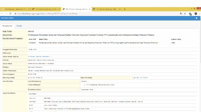 Berdasarkan keterangan dari website LPSE Lampung dengan Kode Tender 8474121. Untuk kode RUP nama paket sumber dana 21560239 Tanggal Pembuatan 14 Mei 2019.
