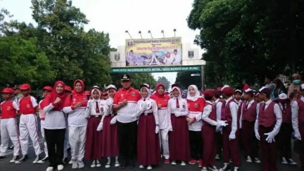 KIPRAH.CO.ID– Lomba Gerak Jalan Tingkat SD dan Tingkat SMP Negeri/Swasta se-Kota Metro Peringati Hari Ulang Tahun Republik Indonesia ke-74 tahun 2019. Pelaksanaan pembukaan lomba tersebut dibuka oleh Walikota Metro dan Wakil Walikota Metro, didampingi oleh Kepala Dinas Pendidikan dan Kebudayaan Kota Metro, Kamis (15/8/2019).