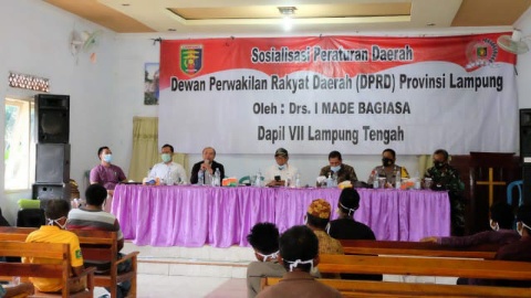 KIPRAH.CO.ID– Anggota DPRD Provinsi Lampung I Made Bagiasa melangsungkan giat Sosialisasi Peraturan Daerah nomor 3 tahun 2020 tentang Adaptasi Kebiasaan Baru di Desa Utama Jaya, Kecamatan Seputih Mataram, Lampung Tengah, Sabtu (13/2/2021).