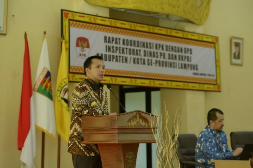 KIPRAH.CO.ID– Gubernur Lampung M.Ridho Ficardo memberi sambuatan sekaligus membuka Rapat Koordinasi Komisi Pemberantas Korupsi (KPK) dengan OPD, Inspektorat, Dinas PU, dan Unit Kerja Pengadaan Barang/Jasa (UKPBJ) Kabupaten/Kota Se-Provinsi Lampung yang dilaksanakan di Gedung Semergow, Kantor Walikota Bandar Lampung, Jumat (17/5) pagi.