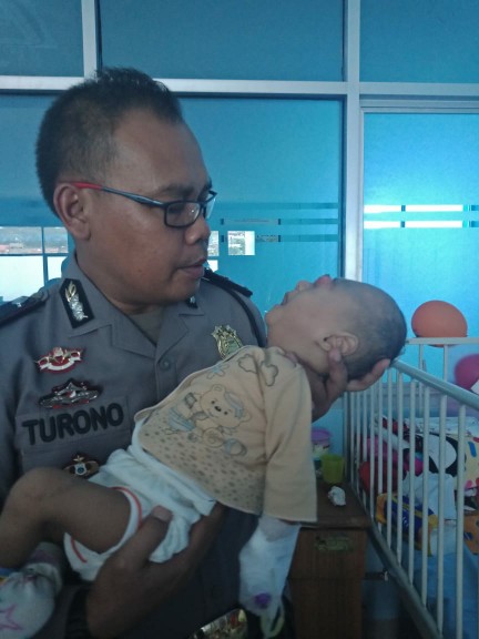 KIPRAH.CO.ID– Personel Kepolisian Resor (Kapolres) Pesawaran Subbag Humas, Aipda Turono Paur mewakili Kapolres AKBP Popon Ardianto Sunggoro, mengunjungi balita penderita mycrosipallus yang sedang dirawat di Rumah Sakit Abdul Moeloek atas nama M. Ramadhan (6 Bulan) anak dari Bapak Rediansyah dan Ibu Weni warga Desa Kurungan Nyawa, Dusun Gedong Dalom, Kecamatan Gedong Tataan, Kabupaten Pesawaran, Kamis (24/1/2019).
