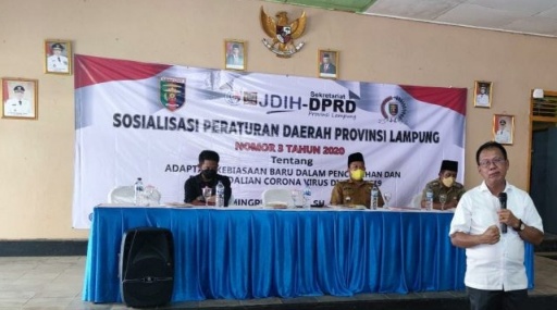 KIPRAH.CO.ID– Ketua DPRD Provinsi Lampung, Mingrum Gumay meingatkan masyarakat Kecamatan Bangun Rejo lebih sensitif terhadap ciri-ciri penyebaran Covid-19 varian Omicorn di lingkungan sekitar. Hal ini disampaikan saat kegiatan sosialisasi Peraturan Daerah Nomor 3 tahun 2020, Senin (14/02/2022).