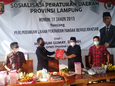 KIPRAH.CO.ID– Ketua DPRD Provinsi Lampung, Mingrum Gumay menggelar sosialisasi peraturan daerah (Perda) nomor 17 tahun 2013 tentang Perlindungan Lahan Pertanian Pangan Berkelanjutan di Kecamatan Gunung Sugih, Jum’at (18/6/2021).