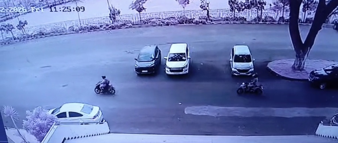 Pukul 11.11 WIB: Dari rekaman CCTV area DPRD Provinsi Lampung, terlihat dua orang berboncengan dengan sepeda motor mondar-mandir di sekitar lokasi parkir.