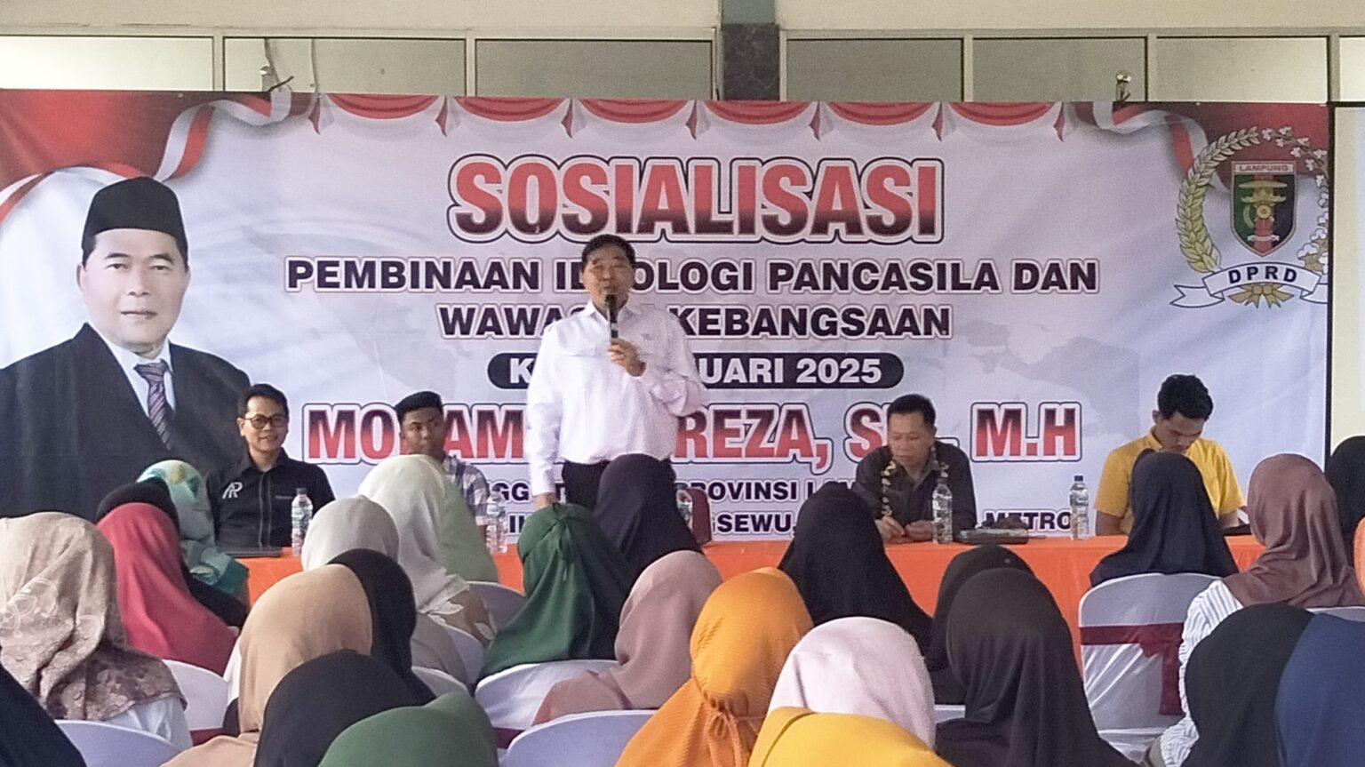 Kegiatan sosialisasi pembinaan ideologi Pancasila dan Wawasan Kebangsaan digelar oleh Muhammad Reza selaku anggota DPRD Provinsi Lampung daerah pemilihan 3 yang meliputi kabupaten Pesawaran, Pringsewu dan Metro.