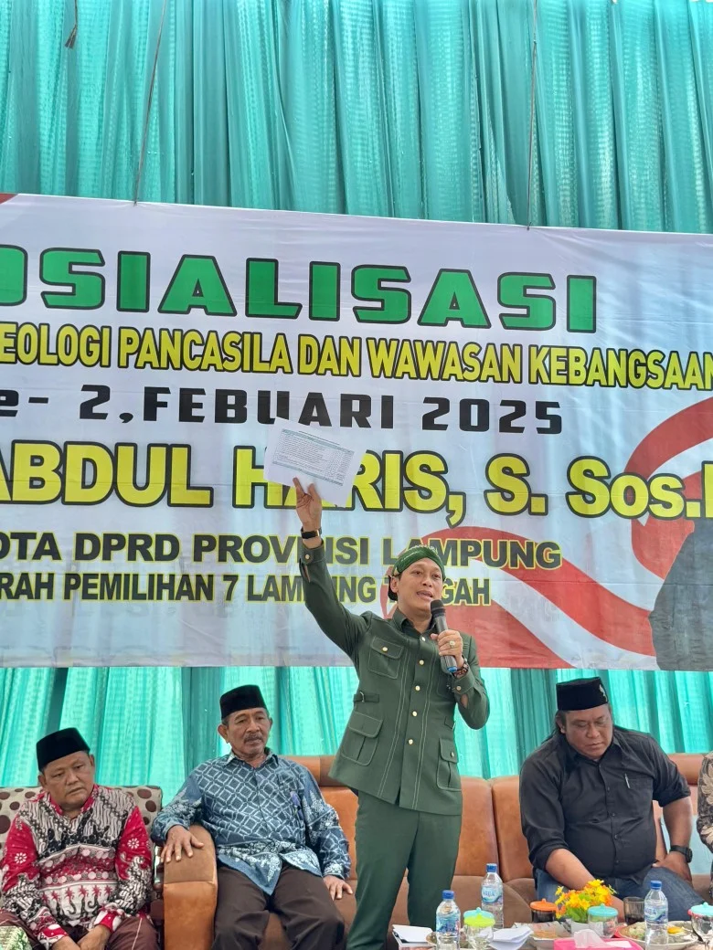 Hal ini ditegaskan Anggota DPRD Provinsi Lampung, Munir Abdul Haris saat melaksanakan sosialisasi pembinaan yang Pancasila dan Wawasan Kebangsaan ke tengah masyarakat dan pemuda di Sendang Agung, Lampung Tengah.