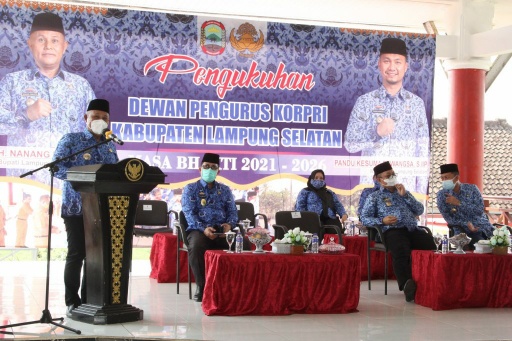 Bupati Nanang juga menyampaikan kepada pengurus serta anggota Dewan Pengurus Korpri Kabupaten Lampung Selatan yang baru dikukuhkan agar mampu memimpin, mempersatukan ASN di wilayah kerja masing-masing.