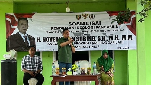Hal itu disampaikan Kanjeng Nover –sapaan akrabnya–, saat sosialisasi Pembinaan Indiologi Pancasila (PIP) kepada para tokoh agama, tokoh masyarakat, tokoh wanita dan tokoh pemuda di Pugung Raharjo, Sekampung Udik, Lampung Timur, Minggu (14/05/2023) sore.