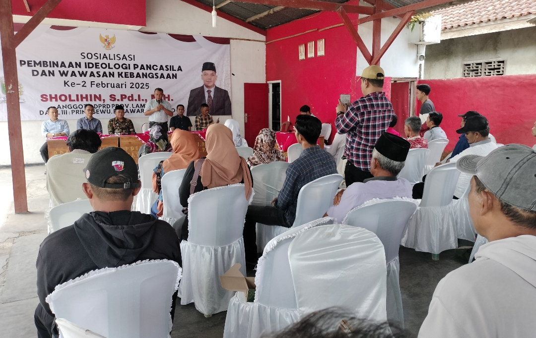 “Pagi hari ini Sama-sama mengikuti Sosialisasi Pancasila, Yang merupakan Program Rutin DPRD Lampung adalah Fraksi PDI Perjuangan di masing-masing Dapil. Nah, hari ini kita dapat bersilaturahmi,” ujarnya