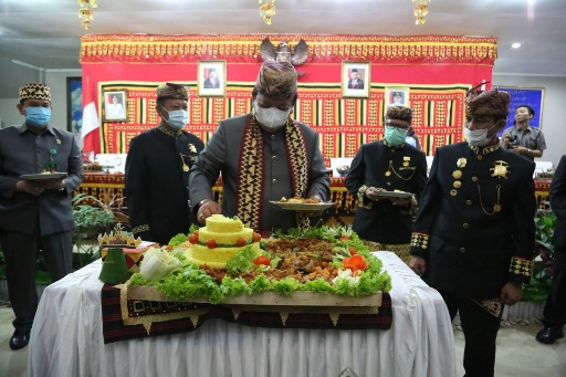 Acara Rapat Paripurna HUT ke-64 Kabupaten Lampung Selatan ditutup dengan pemotongan nasi tumpeng sebagai wujud syukur HUT ke-64 Kabupaten Lampung Selatan. (AZ)