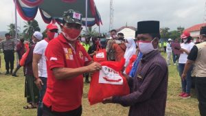 Acara dilanjutkan dengan penyerahan secara simbolis bantuan berupa sembako kepada masyarakat perwakilan. (YD)