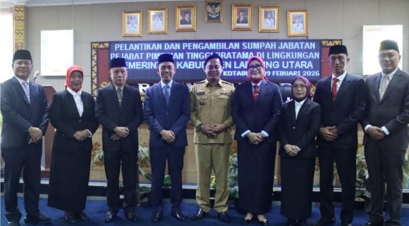 KIPRAH.CO.ID, LAMPUNG UTARA— Pemerintah Kabupaten Lampung Utara resmi memiliki Sekretaris Daerah definitif setelah sebelumnya dijabat oleh penjabat. Pelantikan dan pengambilan sumpah jabatan dilaksanakan pada Senin 09 Februari 2026 di Ruang Siger.
