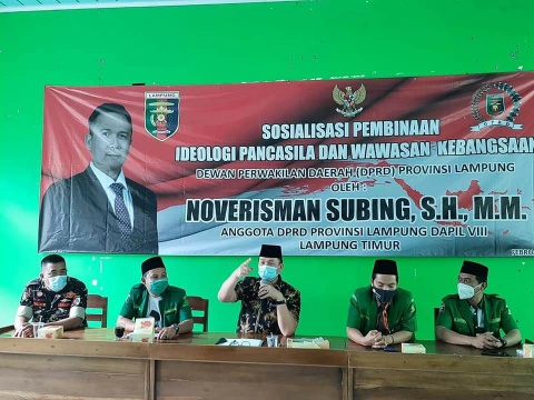 Hal itu dikatakan anggota Fraksi Partai Kebangkitan Bangsa (FPKB) DPRD Lampung, H. Noverisman Subing dihadapan kader GP Ansor, saat Sosialisasi Pembinaan Idiologi Pancasila dan Wawasan Kebangsaan, di Gedung Nahdlatul Ulama (NU) Lampung Timur, Sabtu (27/2/2021).