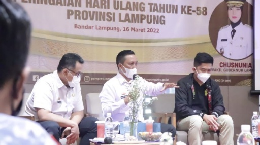 Kadis Kominfotik Provinsi Lampung Ganjar Jationo dalam sambutannya menyatakan bahwa kegiatan ini digelar dalam rangka menyambut HUT Ke-58 Provinsi Lampung yang mengusung tema Bangkit Bersama Mewujudkan Rakyat Lampung berjaya.
