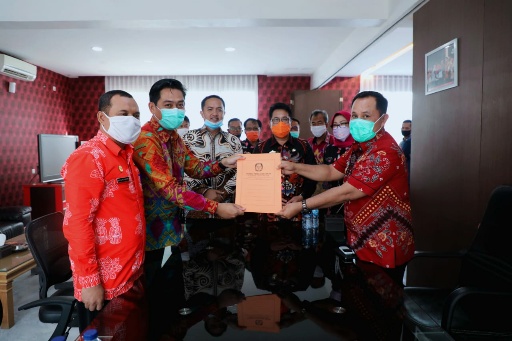 Turut hadir menyaksikan Sekretaris Daerah Kabupaten, Thamrin beserta Kepala Kesbangpol Thomas Amrico, Kepala Badan Pengelola Keuangan dan Aset Daerah (BPKAD) Intji Indriati, Kepala Bagian Hukum dan sejumlah pejabat Pemkab setempat.