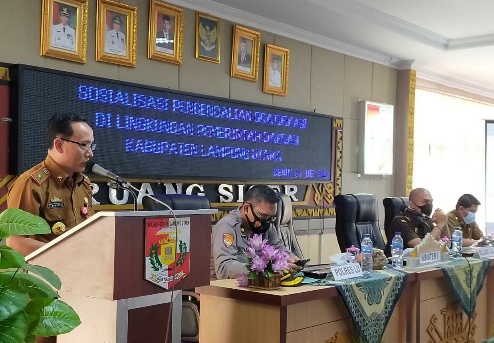 KIPRAH.CO.ID– Pemerintah Kabupaten (Pemkab) Lampung Utara menggelar Sosialisasi Pengendalian Gratifikasi di lingkungan Pemkab setempat. Kegiatan yang menghadirkan pihak Kejari dan Polres Lampura sebagai narasumber tersebut berlangsung di Ruang Siger Setdakab Lampung Utara, Senin (31/5/2021).