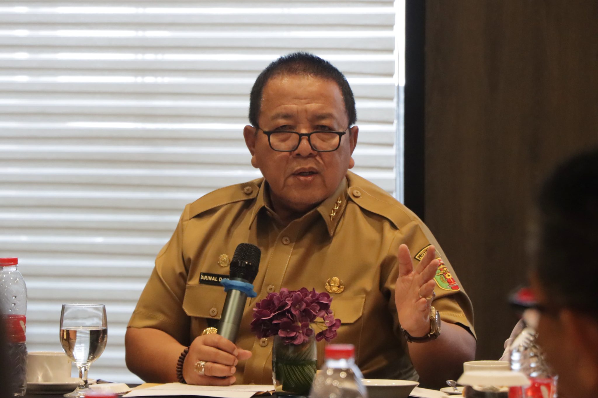 Gubernur Lampung Arinal Djunaidi mengikuti Rapat Koordinasi Penanganan Kebakaran hutan dan Lahan (Karhutla) Provinsi Lampung tahun 2023 di Ambassador Room Lt.2 Hotel Novotel, Selasa ( 19/9/2023).