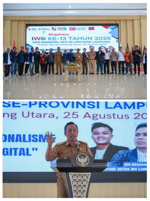 KIPRAH.CO.ID, LAMPUNG UTARA– Pemerintah Provinsi Lampung menegaskan dukungan penuh terhadap peran media online sebagai pilar demokrasi. Hal itu disampaikan Gubernur Lampung Rahmat Mirzani Djausal yang diwakili oleh Kepala Dinas Komunikasi, Informatika, dan Statistik, Ganjar Jationo, saat membuka Rapat Kerja Wilayah Ikatan Wartawan Online (IWO) se-Provinsi Lampung di Pusiban Agung Lampung Utara, Senin (25/08/2025).