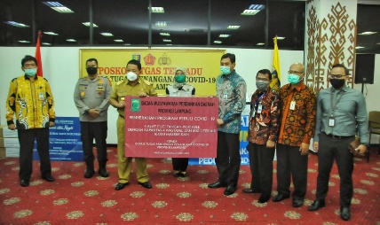 Adapun bantuan sosial tersebut diantaranya berupa, 45 unit Wastafel dan 15.000 Masker Kain dari Bank Indonesia bersama Badan Musyawarah Perbankan Daerah (BMPD) Lampung, Dana Transfer sebesar Rp 100 Juta dari Baznas Provinsi Lampung, dan Baju Coverall APD WP Ribstok Reuse 300 buah, sarung sepatu 300 buah, Masker N95 26 Box / 520 buah, Goggles 400 buah, Sarung tangan 1000 pasang dari masyarakat Lampung di perantauan.