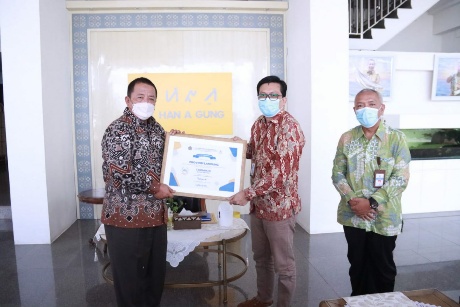 Kepala Kantor Wilayah Direktorat Jenderal Perbendaharaan Provinsi Lampung, Muhammad Dody Fachrudin, menyerahkan penghargaan tersebut dan diterima Gubernur Lampung, Arinal Djunaidi di Mahan Agung.