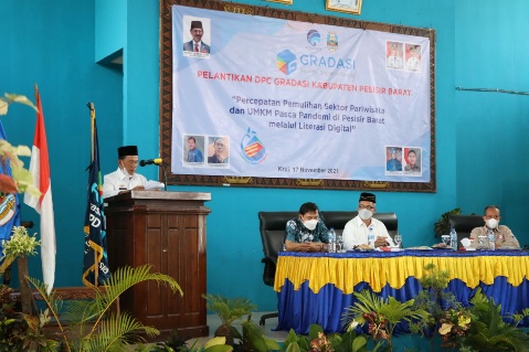 Pelantikan DPC Gradasi tersebut Mengusung Tema “Percepat Pemulihan Sektor Pariwisata dan UMKM Pasca Pandemi di Pesisir Barat Melalui Literasi Digital.