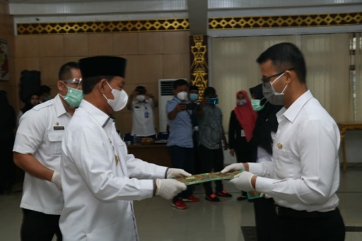 KIPRAH.CO.ID– Penyerahan Petikan Surat Keputusan Bupati Lampung Utara tentang Pengangkatan Calon Pegawai Negeri Sipil Jalur Umun dan Jalur Khusus Cumlaude dan Stabilitas Formasi 2019 di Lingkungan Kabupaten Lampung Utara di Aula Tapis Pemerintahan Kabupaten Lampung Utara, Rabu (30/12/2020).
