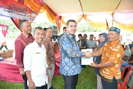 KIPRAH.CO.ID– Bupati Pesawaran Dendi Ramadhona bersama Badan Pertanahan Nasional (BPN) yang didampingi Pokmas Desa Bunut dan Desa Wates bagikan sertifikat tanah kepada masyarakat di dua desa Kecamatan Way Ratai.