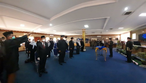 KIPRAH.CO.ID– Sekretaris Daerah (Sekda) Kabupaten Lampung Utara (Lampura) Drs. Hi. Lekok, M.M., melantik dan mengambil sumpah 20 Pejabat Fungsional Pengawas Penyelenggaraan Urusan Pemerintah Daerah (PPUPD) dan Pejabat Pengawas di Lingkungan Pemkab setempat. Kegiatan pelantikan berlangsung di Ruang Siger Setdakab Lampura, Senin (15/3/2021).