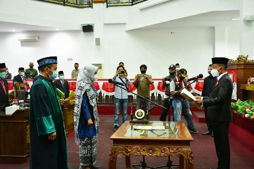 KIPRAH.CO.ID– Sekdakab Tulang Bawang Barat, Novriwansyah menghadiri jalannya rapat paripurna pengucapan sumpah/janji peresmian pengangkatan Pengganti Antar Waktu (PAW) anggota DPRD Tulang Bawang Barat sisa masa jabatan 2019-2024 atas nama Novi Linda di Ruang Paripurna DPRD setempat, Rabu (7/7/2021).