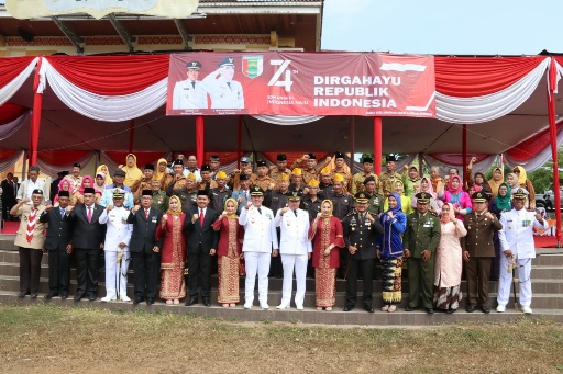 KIPRAH.CO.ID– Dalam memperingati Hari Ulang Tahun (HUT) Kemerdekaan RI ke 74, Bupati Kabupaten Pesawaran H.Dendi Ramadhona, menggelar upacara peringatan detik-detik proklamasi kemerdekaan Republik Indonesia ke 74 tahun dengan tema SDM Unggul Indonesia Maju di Lapangan Pemkab Pesawaran, Sabtu(17/8/2019).
