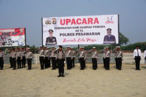 KIPRAH.CO.ID– Kapolres Pesawaran, AKBP Popon Ardianto Sunggoro memimpin upacara peringatan Hari Sumpah Pemuda ke-91 dengan tema ‘Bersatu Kita Maju’, Senin (28/10/2019).