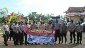 Bhakti sosial serentak itu, memberikan bantuan berupa beras 5 Kg kepada masyarakat yang kurang mampu. Diikuti Kabag Sumda Polres Pesawaran (Jamaludin, SH), Kasat Reskrim Polres Pesawaran (AKP. Enriko Donald S, S.H S.Ik), Kasubbag Humas Polres Pesawaran (AKP. Aris Siregar), Kapolsek Gedong Tataan (Kompol. Amirudin Bh maksum S.pd), Pama Polres Pesawaran, Anggota Polres Pesawaran beserta Bhabinkamtibmas Jajaran Polres Pesawaran.
