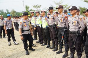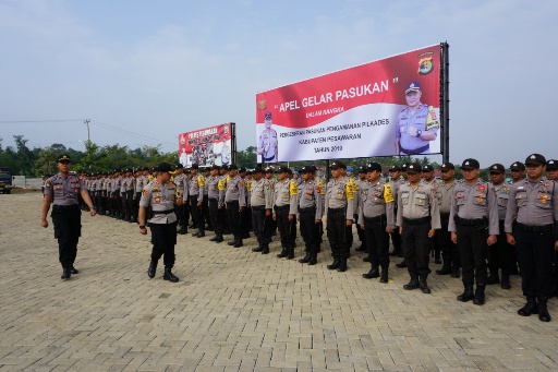 KIPRAH.CO.ID– Polres Pesawaran melaksanakan apel gelar pasukan dalam rangka pergeseran pasukan pengamanan Pemilihan Kepala Desa (Pilkades) serentak 2019, Jum’at (18/10/2019).