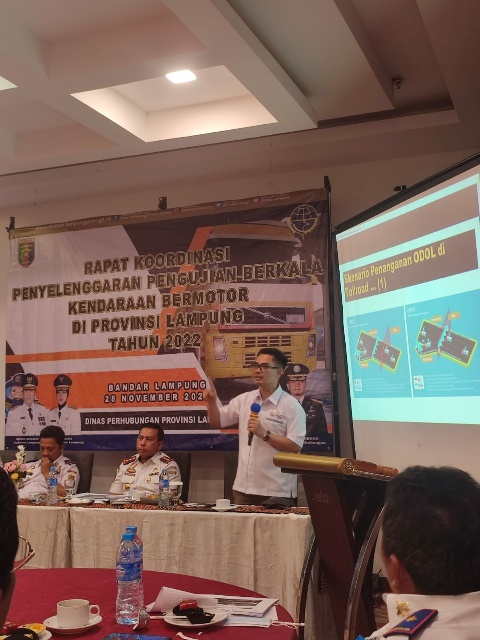 Guna memberikan kepastian dan pelayanan proses pengujian kendaraan bermotor, Dinas Perhubungan Provinsi Lampung menyelenggarakan Rapat Koordinasi Penyelenggaraan Pengujian Kendaraan Bermotor, dihadiri Kepala Dinas Perhubungan Kota/Kabupaten se Provinsi Lampung, Kepala Balai Pengelola Transportasi Darat Wilayah VI Provinsi Bengkulu dan Lampung, ketua dan pengurus DPD IPKBI, pengusaha karoseri kendaraan bermotor, serta akademisi di Hotel Horison, Bandar Lampung, Senin (28/11/2022).