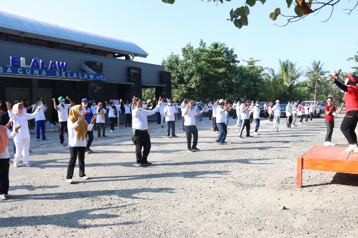Dalam sambutannya PJ Bupati mengucapkan terimakasih kepada seluruh ASN maupun staf OPD atas kehadiranya mengikuti senam bersama, yang kemudian akan dilanjutkan dengan acara pembagian sembako untuk masyarakat yang terkena dampak Covid-19.