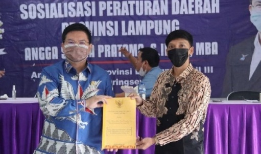 KIPRAH.CO.ID– Angga Satria Pratama anggota DPRD Lampung menggelar Sosialisasi Peraturan Daerah Nomor 3 tahun 2020 tentang adaptasi kebiasaan baru dalam pencegahan dan pengendalian corona virus disease 2019.