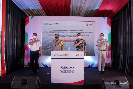 KIPRAH.CO.ID– PT Hutama Karya (Persero) (Hutama Karya) sebagai pengelola beberapa ruas jalan tol di Indonesia secara resmi akan menerapkan tilang elektronik bertajuk Electronic Traffic Law Enforcement (ETLE). Bekerjasama dengan Kepolisian Daerah Provinsi Lampung (Polda Lampung), penandatanganan Perjanjian Kerjasama digelar pada Rabu 2 Maret 2022 sekaligus dilakukan sosialisasi sistem tilang elektronik ELTE tersebut.