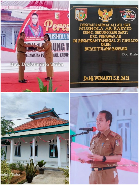 KIPRAH.CO.ID– Bupati Winarti diwakili Kepala Dinas Pendidikan Kabupaten Tulangbawang, Ristu Irham meresmikan Musholla AR Rasyid SDN 1 Gedung Rejo Sakti, Penawar Aji, Selasa (21/06/2022).
