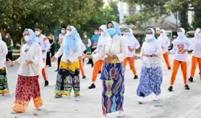 KIPRAH.CO.ID– Ketua Tim Penggerak PKK Provinsi Lampung Riana Sari Arinal mengadakan silaturahmi dan senam pagi bersama para guru, purna bhakti dan alumni serta siswa-siswi SMPN 2 Bandarlampung, di lapangan SMP N 2 Bandar Lampung, Kamis (8/4/2021).