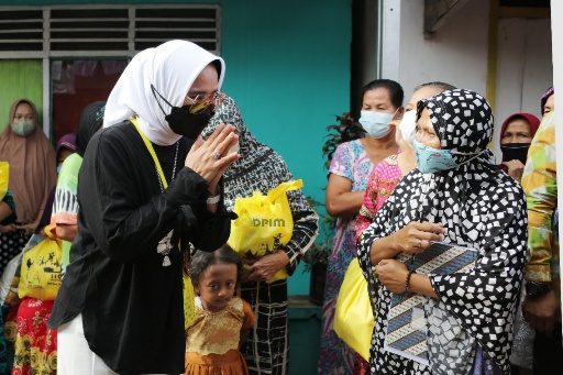 KIPRAH.CO.ID– Ketua Tim Penggerak PKK Provinsi Lampung Ibu Riana Sari Arinal menyerahkan bantuan sembako kepada masyarakat Kelurahan Sumur Putri, Telukbetung Selatan (TbS) dan keluarga nelayan di Pelabuhan Perikanan Lempasing Kecamatan Teluk Betung Barat, Jumat (8/4/2022).