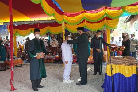 Bupati diwakili Camat Lemong, Muhammad Nursin Candra, melantik Peratin Pekon Pardahaga hasil Pemilihan Peratin (Pilperatin) serentak tahun 2021.