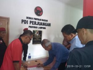 KIPRAH.CO.ID– Mewakili Fritz Ahmad Nuzir, Lukman Hakim menemui tim penjaringan provinsi DPD PDIP Lampung, Senin (21/10/2019). Diterima Ketua Tim Penjaringan, Sutono.