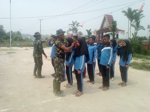 Anak-anak diajari Peraturan Baris Berbaris (PBB). Nampak wajah anak-anak ceria dan bersemangat saat Dan SSK Lettu Arh Arh Madia Erfan H memulai latihan.