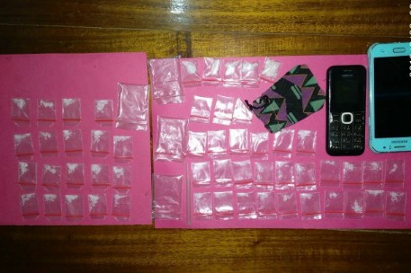 “Dari TKP (tempat kejadian perkara) petugas kami berhasil menyita BB berupa 50 bungkus plastik klip berisi narkotika jenis sabu dengan berat bruto 9,84 gram, dua buah plastik klip kosong ukuran kecil, empat buah plastik klip kosong ukuran besar, pipet yang ujungnya runcing (sekop), dua unit HP (handphone) Nokia warna hitam, HP Samsung warna putih, HP Xiaomi warna putih dan gold, kantung kain dan tas selempang warna hitam,” ungkap Iptu Boby.