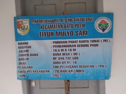 Sebelumnya diberitakan, pembangunan gedung PAUD di Suku 04 RT 10 Tiyuh Mulyo Sari diduga telah mengangkangi Peraturan Menteri Dalam Negeri (Permendagri) yakni dengan sengaja tidak melibatkan Tim Pelaksana Kegiatan (TPK).