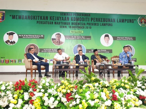 KIPRAH.CO.ID– Empat narasumber hadir dan memberikan pencerahan, dalam seminar bertajuk “membangkitkan kejayaan komoditi perkebunan Lampung”, yang diinisiasi Persatuan Wartawan Indonesia (PWI) Provinsi Lampung, Senin (18/11/2019).